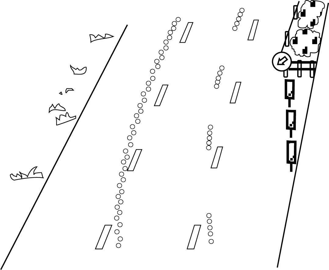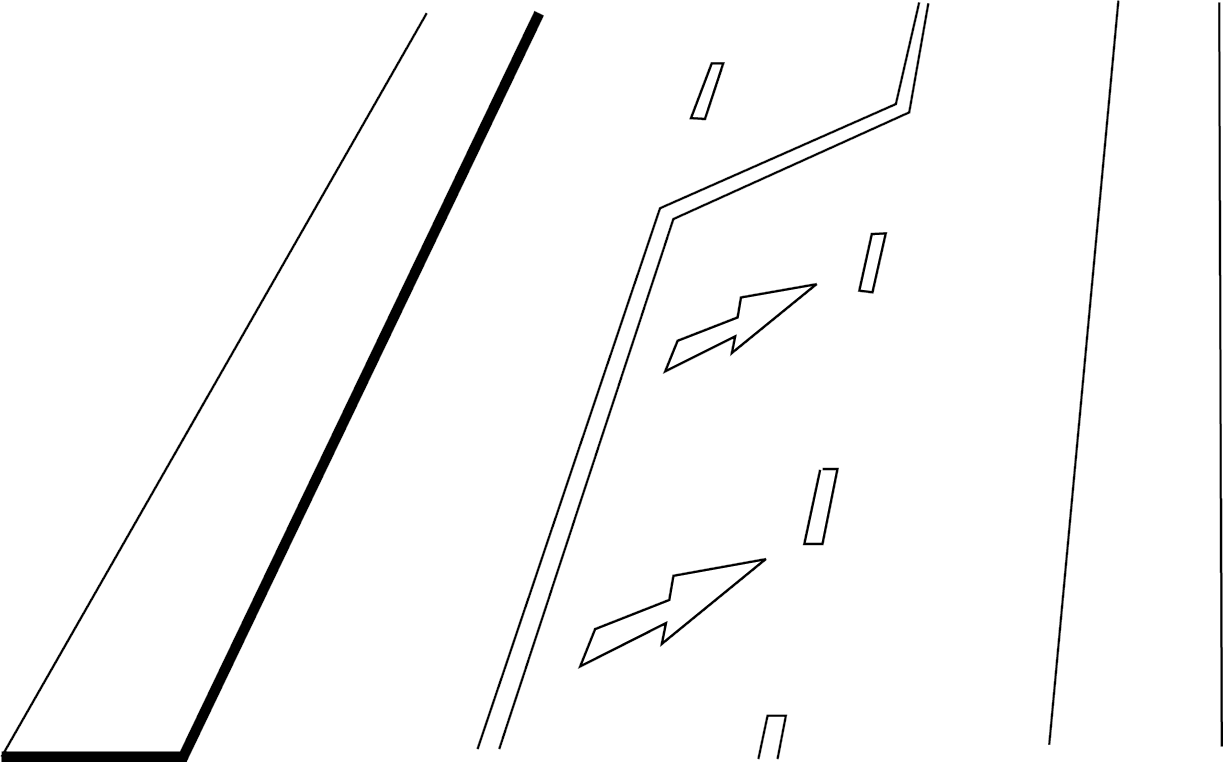 6. Bande latérale : la bande située le long de la chaussée à voie centrale. La bande latérale ne fait pas partie de la chaussée.