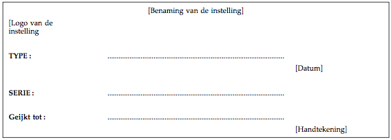 Le Service Métrologie indique dans le dossier d'approbation, en ce qui concerne la vérification primitive et périodique, les essais qui doivent être effectués par type et série de l'appareil. Un exemple de certificat de vérification et le carnet métrologique est joint au dossier.