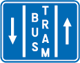 Planche 1. Marque pour une bande de circulation réservée aux véhicules des services publics réguliers de transport en commun et aux véhicules affectés au ramassage scolaire.