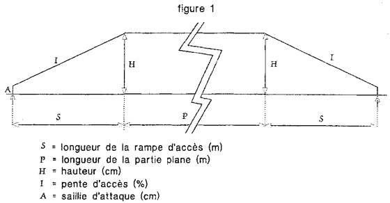 Il peut être modifié en faisant varier sa hauteur (H), sa pente (I) et la forme des rampes d'accès et sa longueur (P).