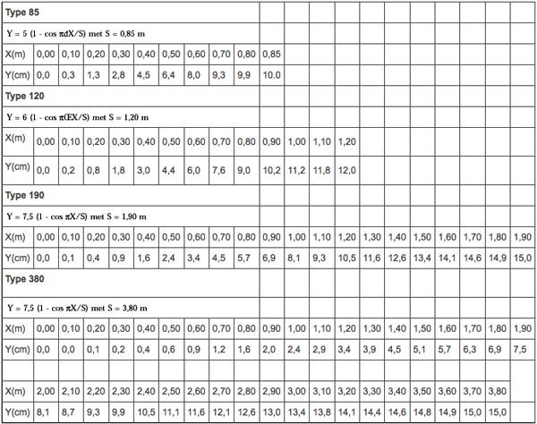 | Y(cm) | 0 | 0,5 | 1,8 | 3,7 | 6,0 | 8,3 | 10,2 | 11,5 | 12,0 | 11,5 | 12,0 | 8,3 | 6,0 | 3,7 | 1,8 | 0,5 | 0 |