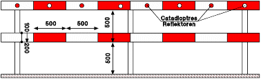 Bandes alternées rouges et blanches (Dimensions en millimètres)