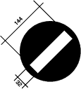 2° La ligne discontinue est constituée de traits d'une largeur d'environ 0,15 m, d'un longueur d'environ 1,25 m et espacés d'environ 1,25 m.