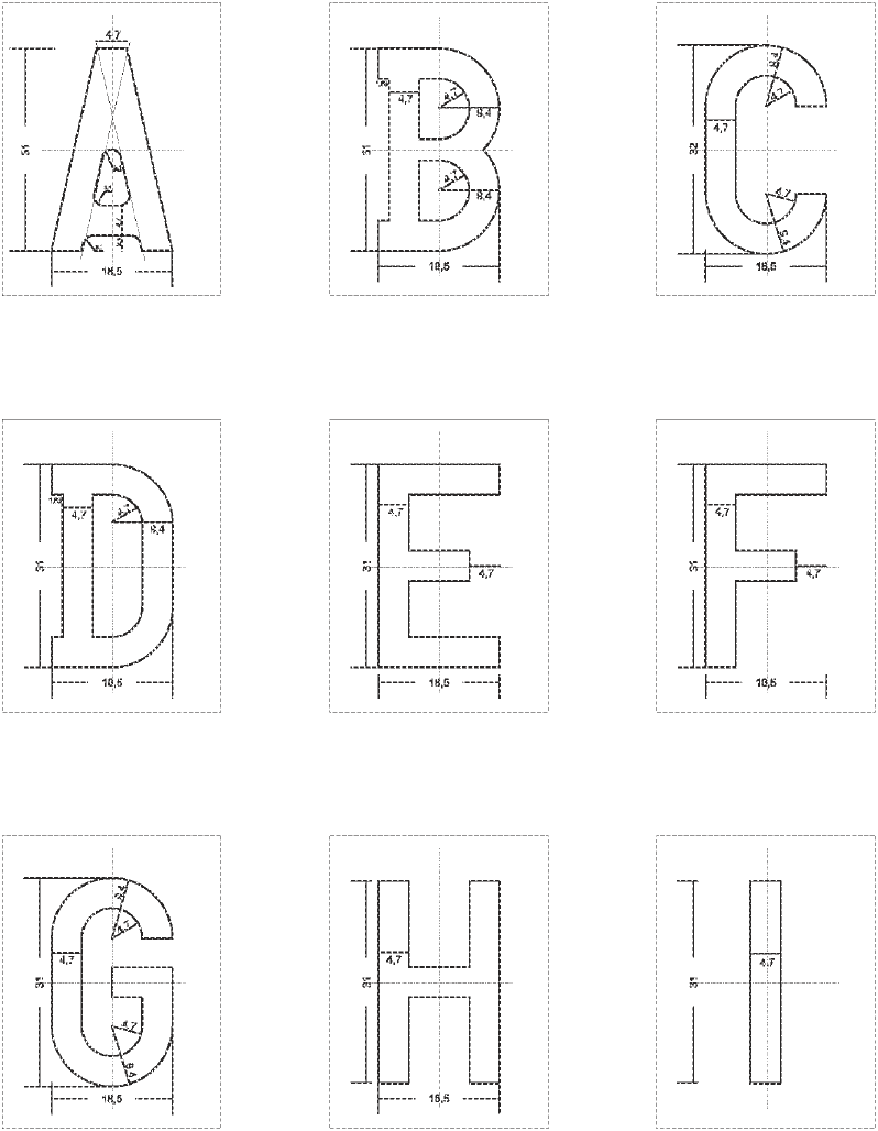 ANNEXE 2bis. — Forme et dimensions des caractères
