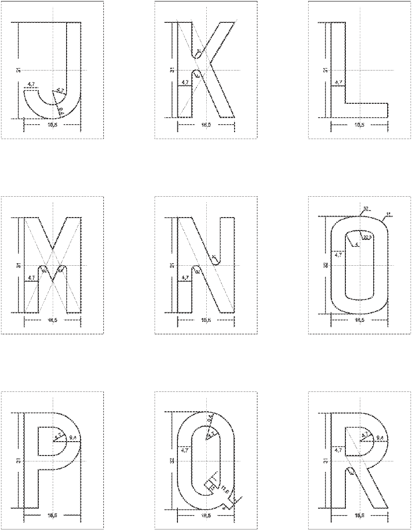Tolérances: hauteur et largeur des caractères +/- 0.5 mm