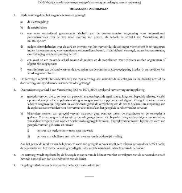 Si aucune convention n'est conclue entre le transporteur et l'organisateur, une autorisation, délivrée par le Ministre, est requise pour l'exploitation de certains services réguliers spécialisés transfrontaliers, pour autant que le point de départ se situe en Flandre.