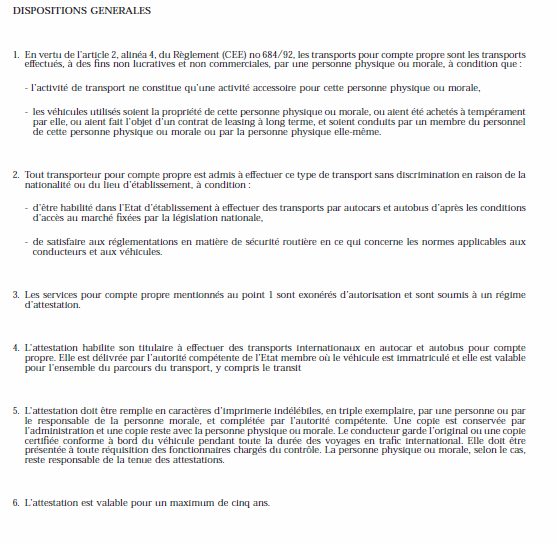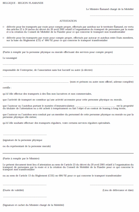 Une attestation peut uniquement être délivrée à celui qui fournit la preuve que les conditions de l'article 22 du décret sont respectées et qui peut démontrer que l'autorisation est demandée pour le transport régulier ou pour un service régulier spécialisé.