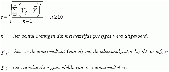 La moyenne des 10 valeurs mesurées ainsi lors du test du gaz d'essai ne doit pas différer de plus de 0,03 mg/l de la moyenne obtenue avec le même gaz d'essai selon la procédure explicitée au point 9.3.