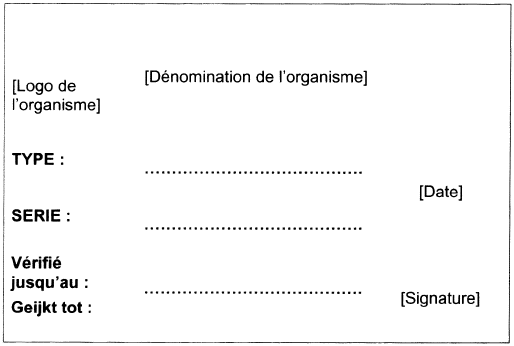 Chaque approbation est accordée pour maximum dix ans et comporte l'attribution d'une marque d'approbation nationale, composée des lettres BE suivies d'un numéro. Cette marque ne peut être attribuée qu'une seule fois et pour un seul modèle d'appareil.