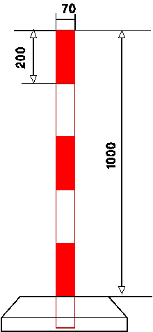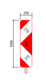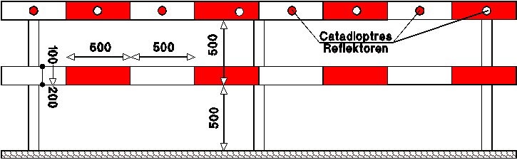 Les balises placées au-dessus du séparateur physique sont espacées au maximum de 30 m. Celles-ci présentent une taille minimale de 400 cm² sur cette longueur de 30 m. Elles sont composées de bandes alternées de couleur rouge et blanche. La rétroréflexion de ces bandes répond au tableau 2-3A du PTV 662.