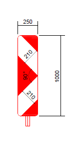 Sur les voies publiques où la vitesse maximale autorisée est inférieure ou égale à 50 km/h, ce dispositif FLR peut être remplacé par un signal D1 d’un diamètre minimal de 0,40 m dont la flèche est inclinée à 45° vers le sol indiquant la direction obligatoire. Dans ce cas, sur le véhicule, le signal A31 peut être de dimension réduite à 0,40 m.