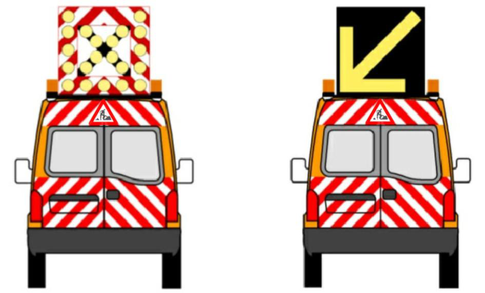 Le véhicule de signalisation est muni d’un dispositif FLR de type III visé à l’annexe 3 équipé du signal A31. Un écran LED selon la NBN EN 12966 ou équivalent peut être utilisé, les dispositions de l’article 8, § 1er, du présent arrêté et celles de l’article 65.3. du Code de la Route sont d’application.