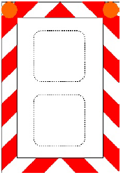 Les bandes du cadre du dispositif sont alternativement de couleur rouge et blanche. La rétroréflexion de ces bandes répond au tableau 2-3A du PTV 662.